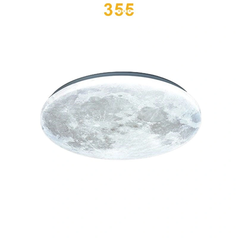 Với phần mặt mica in hình mặt trăng chân thực, đèn tạo nên hiệu ứng ánh sáng mềm mại, dịu nhẹ nhưng đầy cuốn hút. Đây là điểm nhấn thẩm mỹ khác biệt so với các loại đèn ốp trần mica hiện đại thông thường.