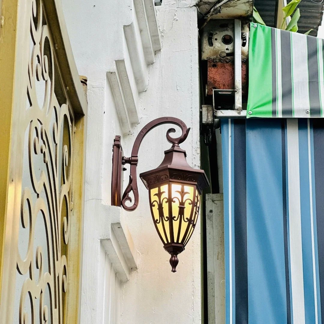• Tạo phong cách cổ điển châu Âu cho mặt tiền: Kiểu dáng đèn lồng, tay uốn cong và hoa văn trang trí giúp khu vực cổng, hiên, ban công mang vẻ sang trọng, đậm chất châu Âu.